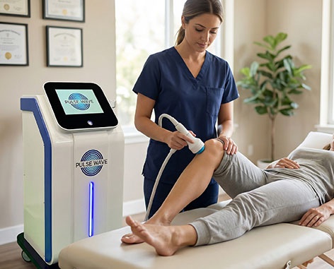 Shockwave therapy is a non-invasive, FDA-cleared, and evidence-based treatment delivered using a handheld device that emits high-energy acoustic pressure waves. These waves penetrate deep into injured tissue up to 5 inches, creating controlled microtrauma that stimulates the body’s natural healing response and offers an effective alternative to surgery or injections.